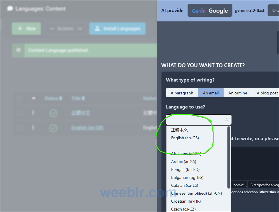 language pack and cleared the Joomla cache, and now the “Chinese Traditional (Taiwan)” option is available in 4AI.